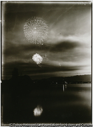 - August, 15th Year of Taisho, fireworks to celebrate the start of the boating season at Ryotsu Town. The crowd cheers the spectacular colors