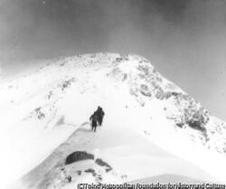 - (Snowy mountains and people)